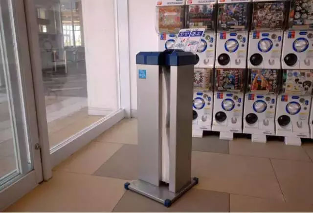 ↑進(jìn)門(mén)處是自動(dòng)傘套機(jī)。防止雨天傘上滴水路滑。