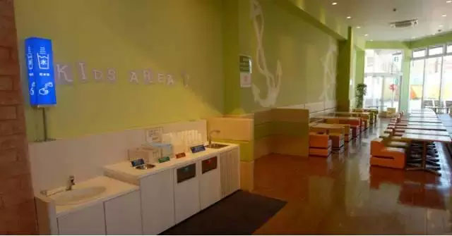 ↑兒童區(qū)內(nèi)所有設(shè)備尺寸都小一號(hào)。桌椅,洗手池都是兒童尺寸。