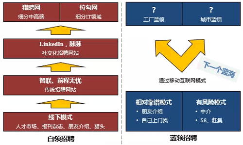 通過分析整個招聘行業(yè),我們看到白領(lǐng)招聘已經(jīng)互聯(lián)網(wǎng)化并進入細分競爭階段。由于智能手機的普及,藍領(lǐng)招聘剛剛進入移動互聯(lián)網(wǎng)化的窗口期,尚未有成型的玩家出現(xiàn)。信息源:揭陽人才網(wǎng)_www.m.anshunfh.com