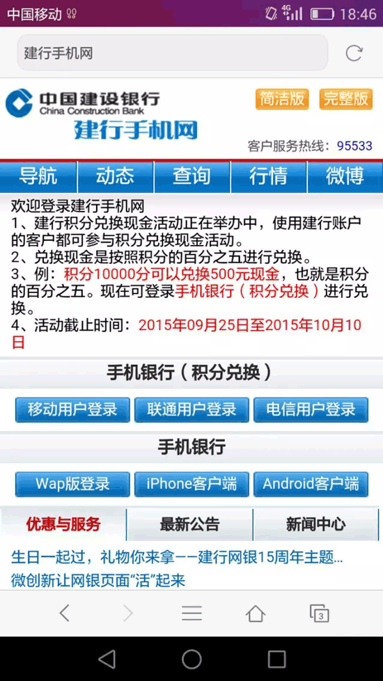 有建設(shè)銀行的標(biāo)志,積分兌換規(guī)則又寫得很正規(guī),應(yīng)該不會有假吧?于是,一小部分市民進(jìn)一步走入了騙子的圈套,登錄了所謂的“手機(jī)銀行”……